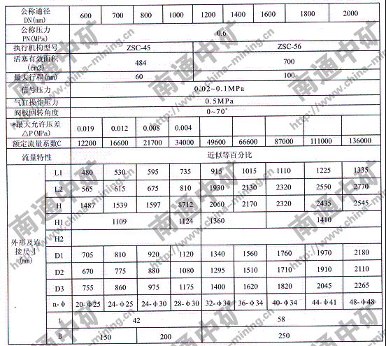 ZSCW-0.6k/b型氣動調(diào)節(jié)蝶閥外形尺寸: