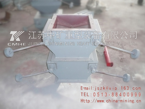 DbSzF型雙層雙門重錘式鎖風翻板閥的閥板在物料重力作用下自動開啟,物料下落后,配重杠桿系統(tǒng)使閥板自動復位,防止野風吹入,從而完成物料的輸送。