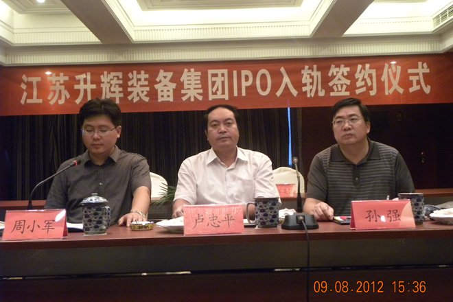副縣長盧忠平在江蘇升輝裝備集團(tuán)IPO入軌簽約儀式上講了話。他說,升輝集團(tuán)是我縣建材機(jī)械行業(yè)的一家骨干企業(yè),進(jìn)軍資本市場的條件已經(jīng)成熟。他希望升輝集團(tuán)加快推進(jìn)報會前的各項準(zhǔn)備工作。他同時要求縣有關(guān)部門切實(shí)做好服務(wù),并預(yù)祝升輝集團(tuán)早日登陸、順利上市。
