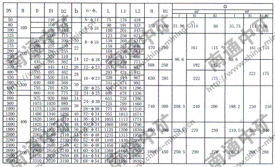 注:法蘭連接符合JB78-59《管路附件、法蘭連接尺寸》PNO.6Mpa規(guī)定,也可心按用戶要求采用其它標(biāo)準(zhǔn)。