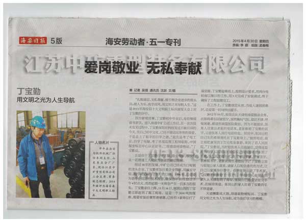 2015年2月,在海安縣十大文明職工標(biāo)兵的頒獎大會上,江蘇中礦公司副總丁寶勤走上了領(lǐng)獎臺。主持人宣讀了頒獎詞:扎根基層,無私奉獻(xiàn),做引領(lǐng)企業(yè)進(jìn)步的排頭兵;助人為樂,亮節(jié)高風(fēng),用文明之光導(dǎo)航人生。人生的旅途因?yàn)橛心愣?,道德的豐碑因你而閃光。