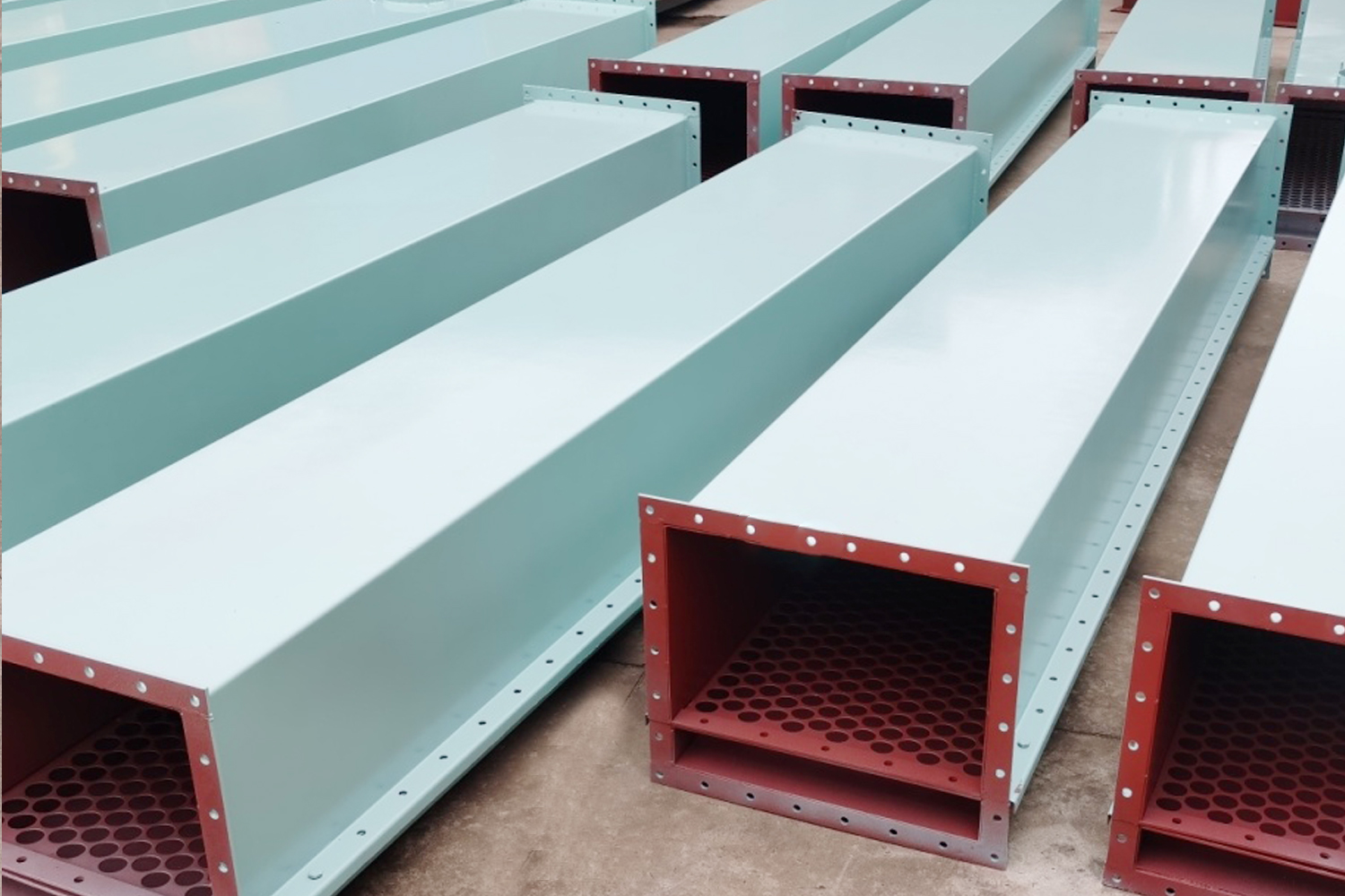 空氣斜槽用于水平輸送干燥粉狀物料的設備。它是由數(shù)個薄鋼制成的槽子聯(lián)接組成,并沿其輸送方向布置成一定的斜度。空氣輸送斜槽主要用于水泥、粉煤灰等易流態(tài)化的粉狀物料。