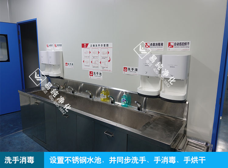 3 最后一道程序為風淋室,風淋機采用不銹鋼成品設備,要求同班次員工5 分鐘內能夠全部通過,風淋機的長度應根據(jù)員工數(shù)量及單次風淋時長進行計算,合理選用。風淋機一側應設下班員工專用通道,這樣可避免換班人流的交叉,提高換班通行效率。由于國家規(guī)范及行業(yè)標準無對此類房間的設計要求,筆者根據(jù)工作經(jīng)驗,推薦設計人員按照以下標準進行設計:換鞋間0.1~0.2 ㎡/人,一次更衣室0.8~1.2 ㎡/人,二次更衣室0.2~0.3 ㎡/人,衛(wèi)生間大、小便器15~20 人/個,淋浴位15~20 人/個,手部消毒池水龍頭10~15 人/個。