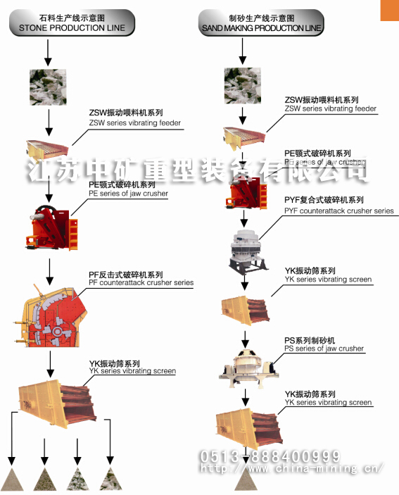 石料生產(chǎn)線主要由振動給料機、顎式破碎機、反擊式破碎機、振動篩、膠帶輸送機、集中電控等設備組成。設計產(chǎn)量一般為50-500噸/小時。為滿足客戶不同的加工需要,可配備圓錐式破碎機、除塵設備等。