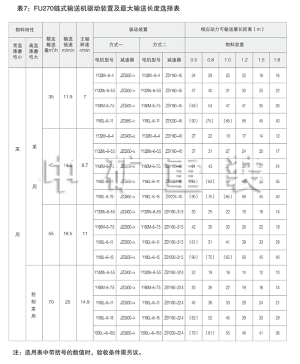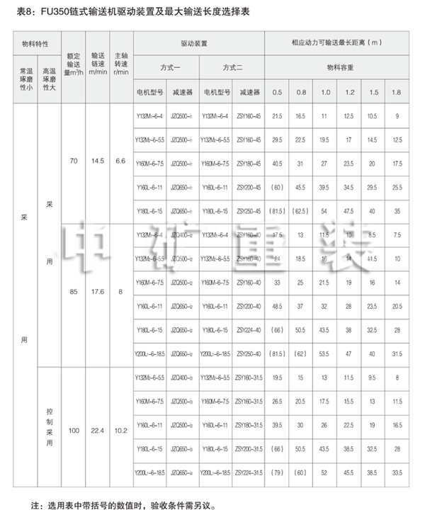 正確合理地選型和使用保養(yǎng)才能發(fā)揮設備的性能。在選用F U鏈式輸送機時,應注 意以下幾個重要參數(shù):