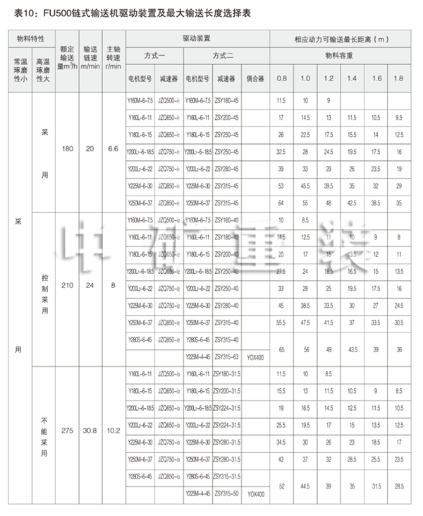 用戶應根據(jù)被輸送物料的性能、狀態(tài)(如:磨琢性、料溫、物料粒度)等因素選擇。對于輸送 水泥生熟原料和成品粉料的適宜鏈速可參照表3。其它與水泥性能和狀態(tài)相近的物料也可參照此表。