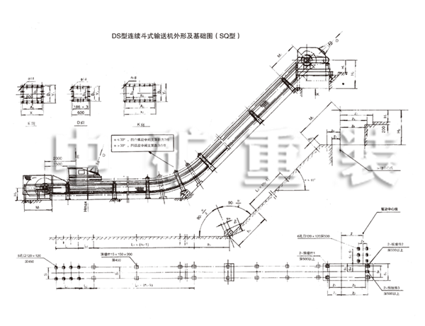 DS型連續(xù)式斗式輸送機外形及基礎圖(SQ型)