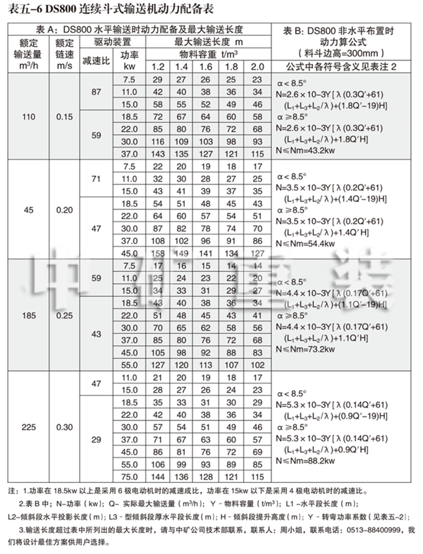 4、DS 800連續(xù)斗式輸送機動力配備表