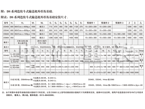 2、DS 540連續(xù)斗式輸送機動力配備表