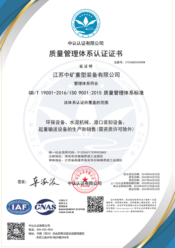 質(zhì)量管理體系認證證書
